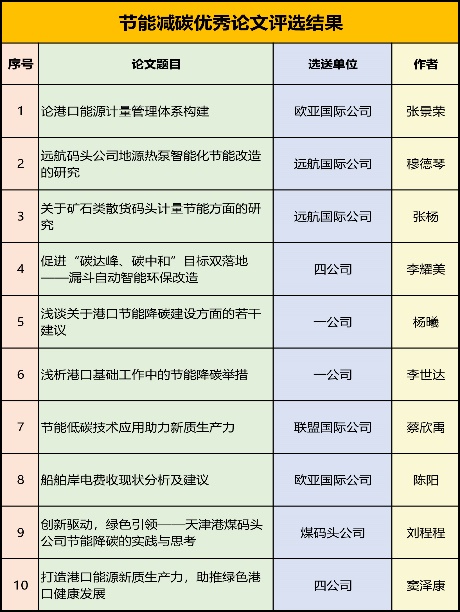 股份公司積極響應(yīng)習(xí)近平總書(shū)記“發(fā)展新質(zhì)生產(chǎn)力”的重要論述要求,組織開(kāi)展2024年度節(jié)能降碳征文活動(dòng)。各所屬單位在“雙碳”背景下,將新質(zhì)生產(chǎn)力與節(jié)能降碳工作相結(jié)合,圍繞“促進(jìn)新能源、新技術(shù)的運(yùn)用與開(kāi)發(fā),加快港口能源結(jié)構(gòu)轉(zhuǎn)型速度,推動(dòng)天津港綠色港口建設(shè)高質(zhì)量發(fā)展”等方面進(jìn)行深入研究,最后經(jīng)過(guò)專家組評(píng)選出了10篇文章榮獲優(yōu)秀論文獎(jiǎng)。